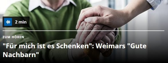Sie wohnen weit weg und wissen, dass Ihre Eltern in Weimar alleine wohnen. Vielleicht sind die guten Freunde und Verwandten weggezogen oder inzwischen verstorben. Wünschen Sie sich einen „Guten Nachbarn“ für Ihre Eltern?