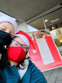 Daniela mit ihrem kleinen Helferlein auf Wichtelmission