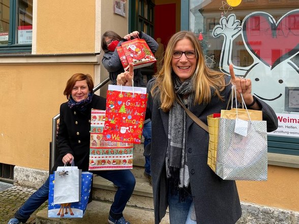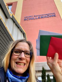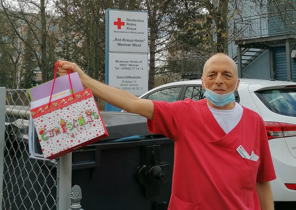Die Karten haben erhalten: Seniorentreff We-West, Diakonie Altenhilfe Sophienhaus, Friedrich-Zimmer-Haus, Haus Annemarie & Elfriedenheim, das RK-Heim Ettersburg, Marie Seebach Stift, der Pflegedienst Rische, Apotheken und Postboten. Das AWO Pflegezentrum am Hospitalgraben, das betreute Wohnen in der Berkaer Straße und Abraham-Lincoln-Straße des DRK, das Azurit Seniorenzentrum Schillerhöhe und betreute Wohnen Weimarblick. Das DRK Heim Hausknechtstraße und Weimar-West, AWO Seniorenzentrum Am Paradies sowie das Hospiz am Schießhaus, twsd Betreutes Wohnen in der Schwanseestraße und in Legefeld, die Intensive Pflege und Betreutes Wohnen in Bad Berka, das Seniorenzentrum Marie Martha in Blankenhain, das Haus Clara und Heim St. Elisabeth der Caritas sowie das Kursana Domizil in Oberweimar.