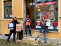 Eine Großlieferung für Betreute Wohneinrichtungen in Weimar, Bad Berka und Blankenhain nimmt Christine Mosbach vom twsd entgegen.