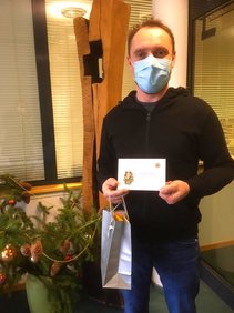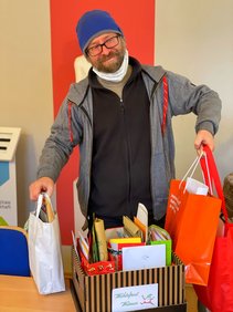 Herr Senf, Leiter des AWO-Pflegezentrums am Hospitalgraben, freut sich über Post.