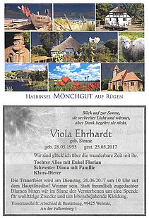 Heute mussten wir in der Zeitung lesen, dass unsere Viola am 25.5.2017, nach mehrjähriger schwerer Erkrankung, verstorben ist.