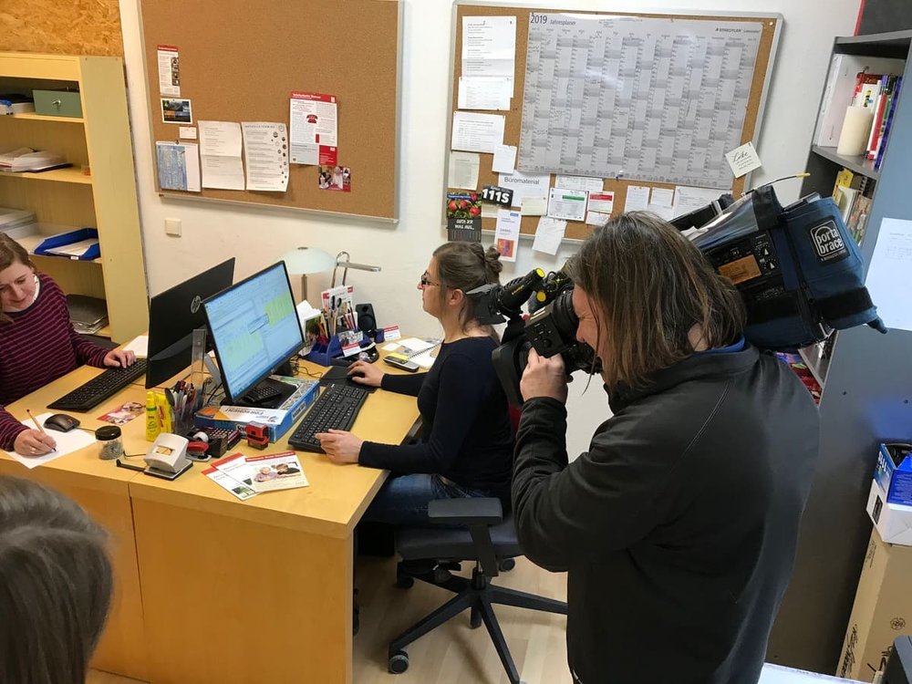 Das ZDF war für die Nachrichtensendung "heute - in Deutschland" zu Besuch bei unseren Telefonketten-Damen Heidi und Gisela sowie in der Weimars Gute Nachbarn-Zentrale in der Teichgasse. Cornelia Meyer und Anja Pfotenhauer sprachen mit Redakteurin Johanna Kiesler über unser Seniorenbegleiterangebot und die Idee der Telefonkette.