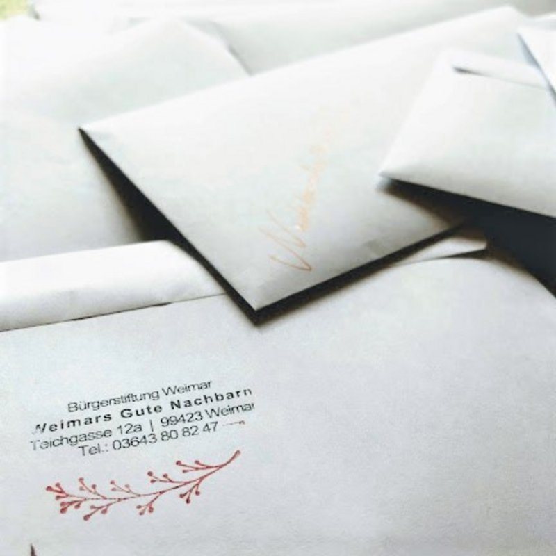 Viele von unseren Seniorenbegleiter*innen sind schon langjährig in unserem kleinen Projekt aktiv und setzen sich in vielfältigster Weise für ihre Senioren und auch für die Nachbarschaftshilfe in Weimar ein: Sie zeigen Gesicht, helfen aus und packen mit an, nicht nur an unserem Vereinshüttentag auf dem jährlichen Weihnachtsmarkt. Mit einigen hatten wir in den letzten Wochen besonders viel Kontakt, da sie alle ihre Senior*innen nicht mehr wie gewohnt besuchen und so mit den Corona-Kontakt-Beschränkungen zu kämpfen hatten. Wir tauschten herzliche Worte, mutmachende Gedanken und viele tolle und nützliche Tipps aus, z. B. wie man trotzdem im Kontakt bleiben kann, auch wenn der gemeinsame Frühlingsspaziergang erstmal verschoben werden muss. In unserem Brief informieren wir über unsere Arbeits- und Alltagssituation und möchten einfach nur DANKE dafür sagen, dass sie auch weiterhin ein Guter Nachbar sind und bleiben.