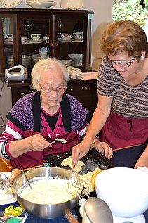 Im Projekt 8 "Ein Stück vom Kuchen" zauberte unsere Gudrun Holzhäuser mit anderen freiwilligen Kuchenfeen gemeinsam mit den Bewohnerinnen vom Sophienhaus köstliche Kuchen. Nach dem gemeinsamen Eindecken der fürstlichen Kaffeetafel, gab es ein gemütliches Kaffekränzchen mit Gesprächen mit Bewohnern, musikalischen Beiträgen und gemeinsames Singen.