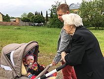 Sie besuchten gemeinsam Ihre Seniorin Hildegard im Betreuten Wohnen in Legefeld. Bei schönem Wetter verbrachten sie eine tollen Vormittag zusammen. Dies haben besonders Weimars jüngste (6 Monate) und auch die älteste gute Nachbarin (93) sehr genossen.