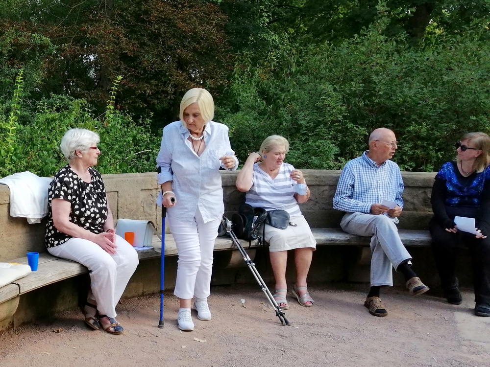 So begann am Samstag, den 03.09. unser Erfahrungsaustausch an der Pompejanischen Bank im Ilm Park.