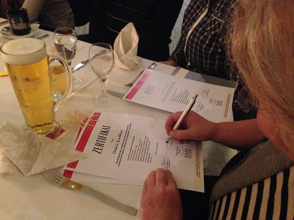 Im Rahmen der gemeinsamen Abschlussfeier konnten wir dieses Jahr an Frau Matthie, Frau Tramnitz, Frau Meinhardt, Frau Sundhaus und Herrn Einenkel druckfrische Zertifikate übergeben. Alle fünf sind nun frischgebackene, ausgebildete Seniorenbegleiter. Herzlichen Glückwunsch!